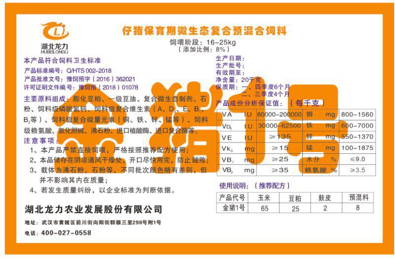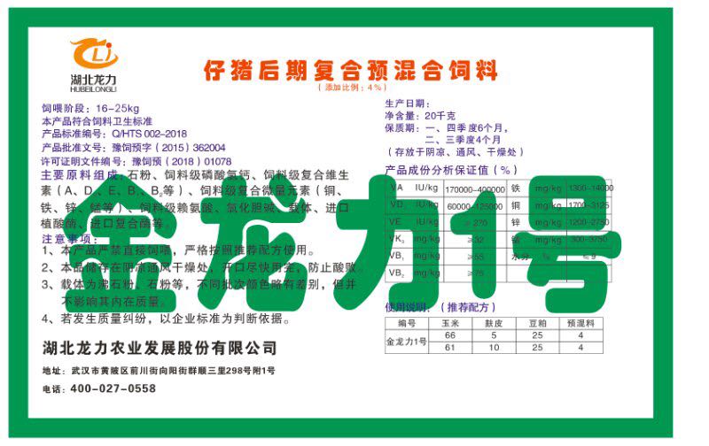湖北龍力農(nóng)業(yè)發(fā)展股份有限公司坐落于武漢市黃陂區(qū)前川街向陽街群順三里298號(hào)附1號(hào)。公司成立于2014年6月,公司自成立以來把“創(chuàng)全球最大養(yǎng)豬綜合服務(wù)”為企業(yè)愿景。致力于打造教保料品牌”作為公司發(fā)展的明確目標(biāo)。公司一直致力于豬營(yíng)養(yǎng)的研究和開發(fā),積極與國(guó)內(nèi)外高校和科研機(jī)構(gòu)合作,推廣養(yǎng)豬技術(shù)、動(dòng)物營(yíng)養(yǎng)新概念,向世界農(nóng)牧企業(yè)學(xué)習(xí)與合作。公司采用國(guó)內(nèi)先進(jìn)的生產(chǎn)工藝,選擇高精度電子配料秤,高均勻度、無殘留混合機(jī)等先進(jìn)設(shè)備....